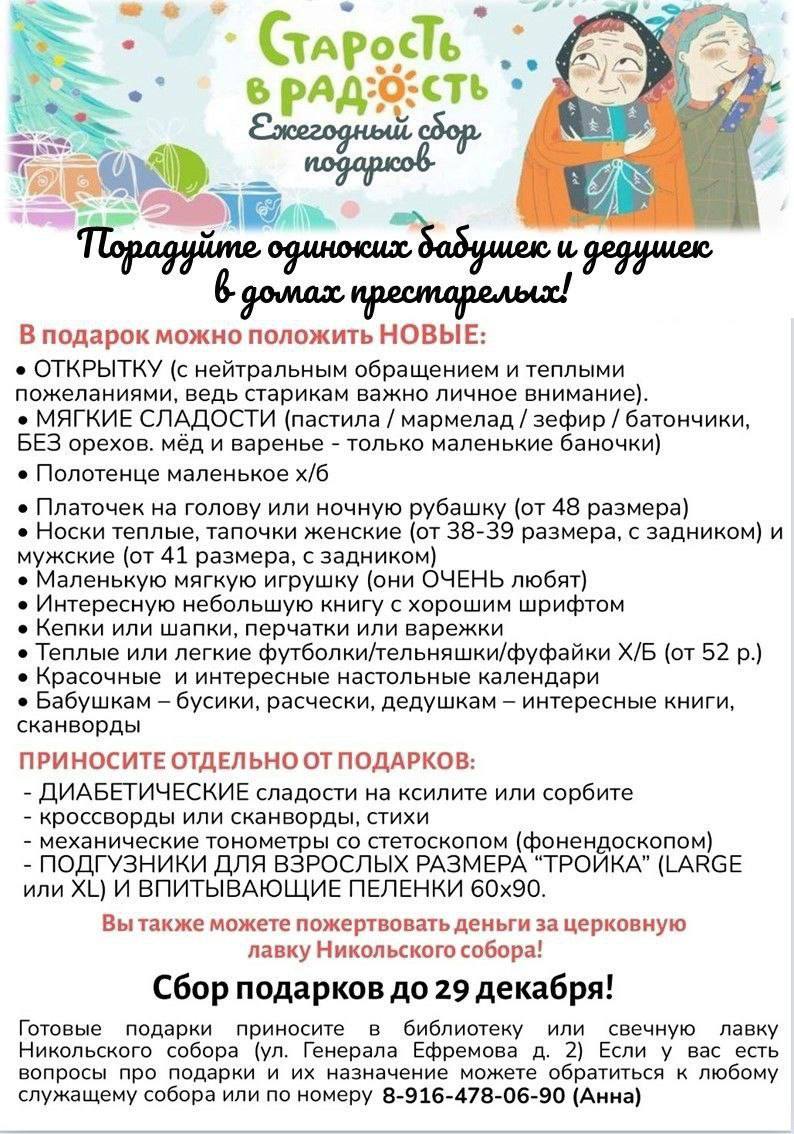 По традиции мы начинаем акцию «Старость в радость» по сбору подарков для одиноких бабушек и дедушек в домах престарелых