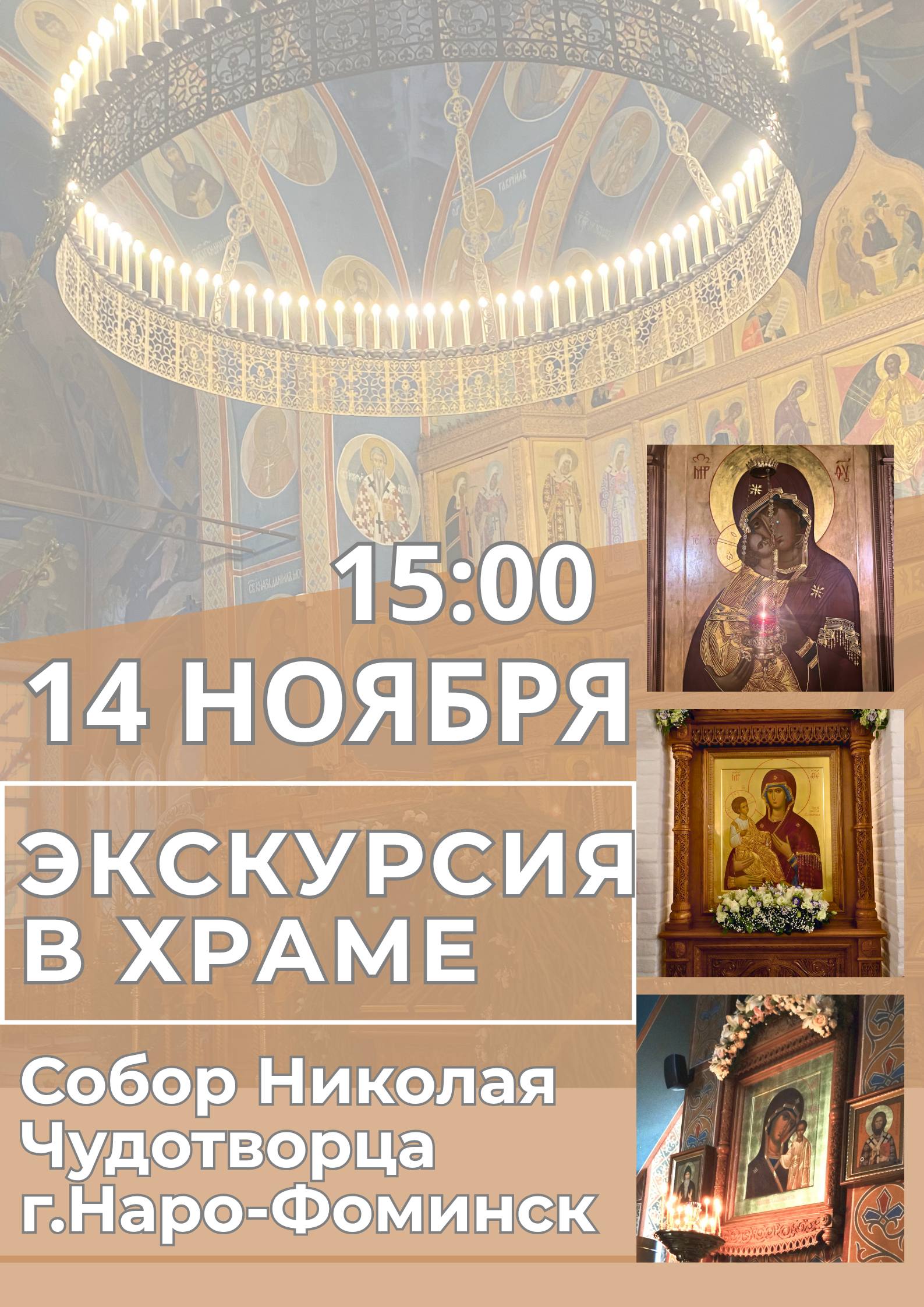 Дорогие друзья, 14 ноября (пятница) в 15:00 в нашем храме состоится экскурсия на тему: «Роль святых образов Пресвятой Богородицы в истории государства Российского (икон «Владимирская», «Троеручица», «Казанская»)